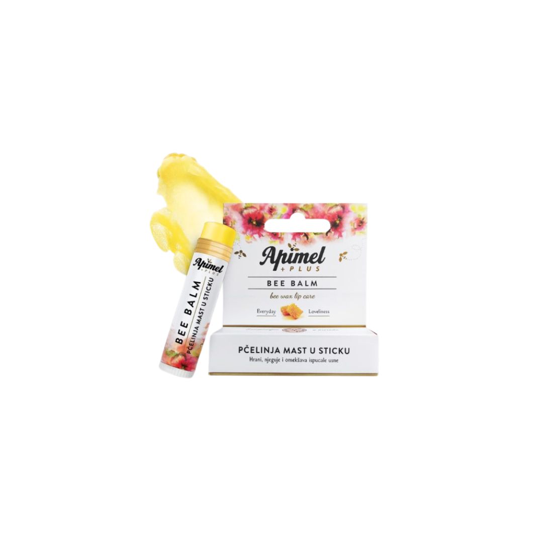 Apimel Pčelinja mast u sticku praktična je kozmetička formula na bazi pčelinjeg voska, poznatog po svojim zaštitnim i njegujućim svojstvima.