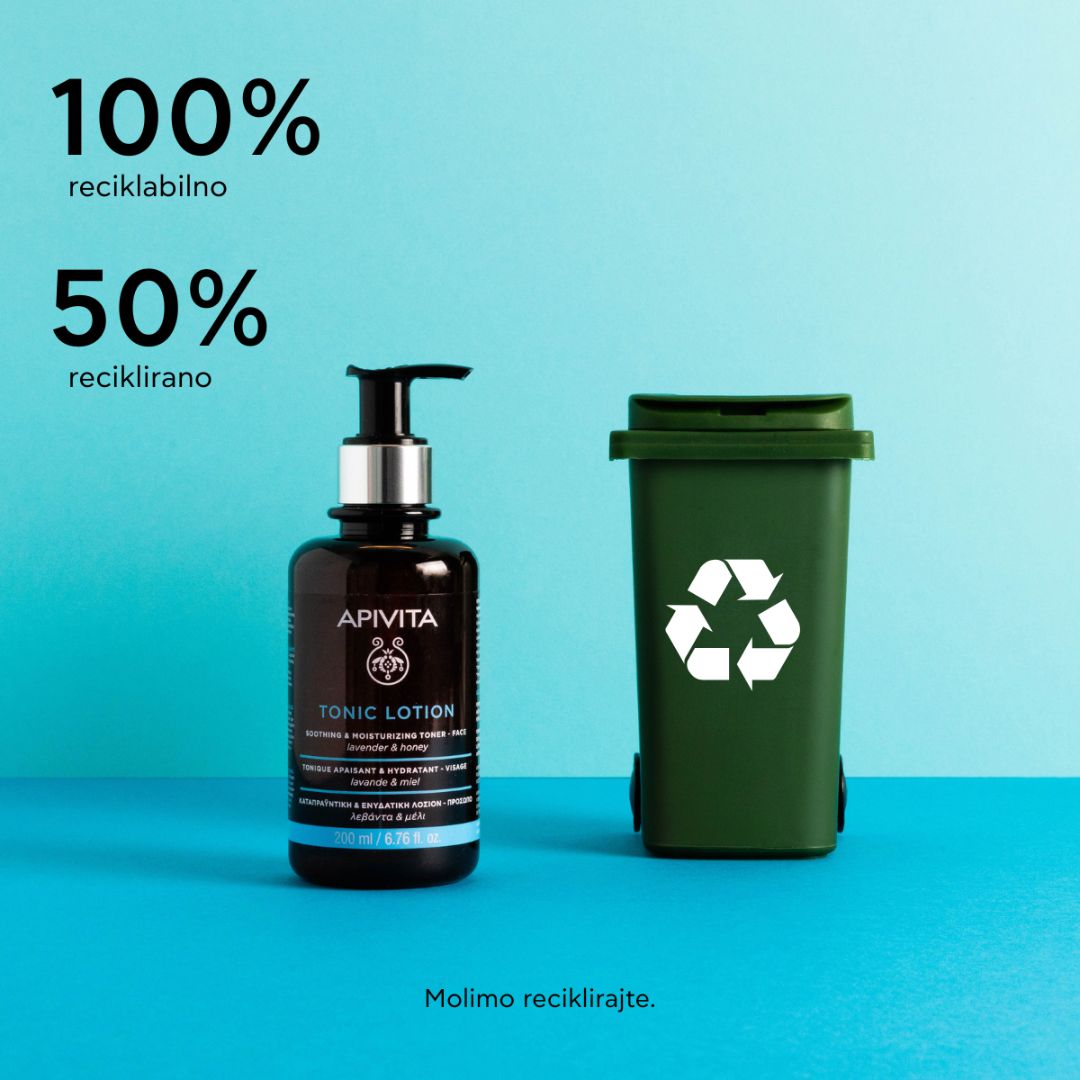 Apivita tonik za čišćenje lica s lavandom i medom hidratizira, umiruje kožu i uklanja nečistoće. Za sve tipove kože.