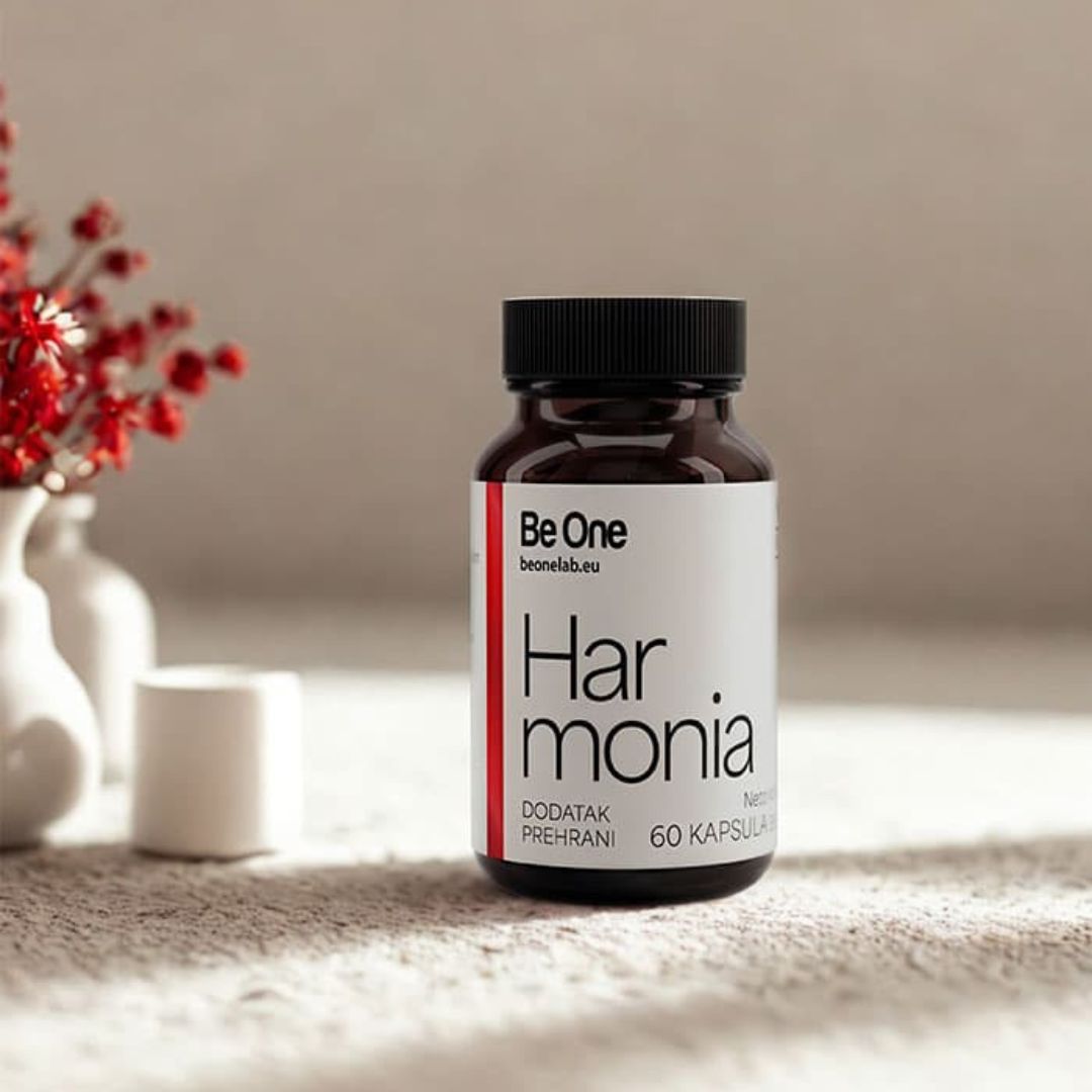 Be One Harmonia je dodatak prehrani za žene u perimenopauzi i menopauzi s NRCl, vitaminima, mineralima, biljnim ekstraktima i probioticima za podršku energiji, vitalnosti i ravnoteži organizma.