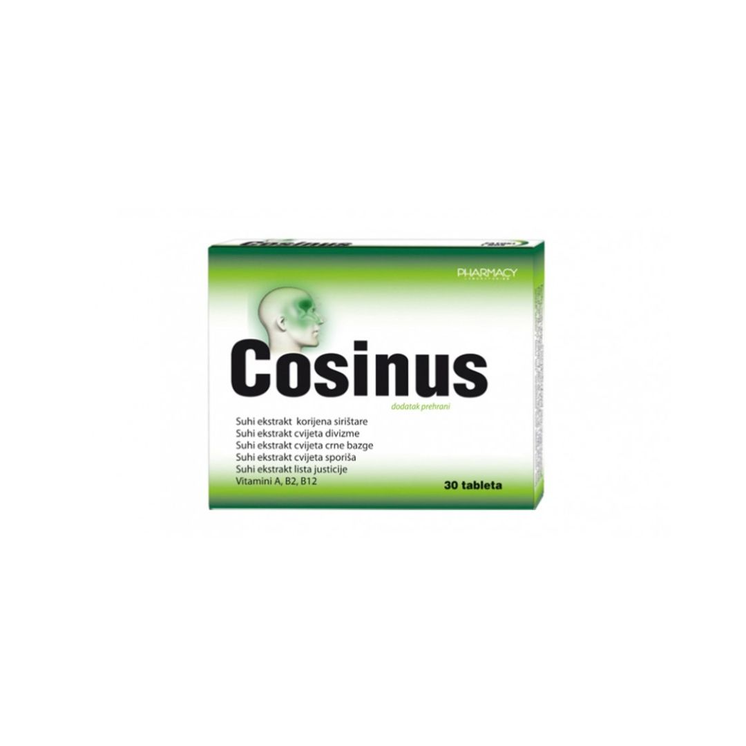 Cosinus tablete su dodatak prehrani temelji se na sinergiji ljekovitog bilja i vitamina koji ciljano djeluju na upaljene sinuse, začepljen nos i glavobolju uzrokovanu pritiskom u sinusima.