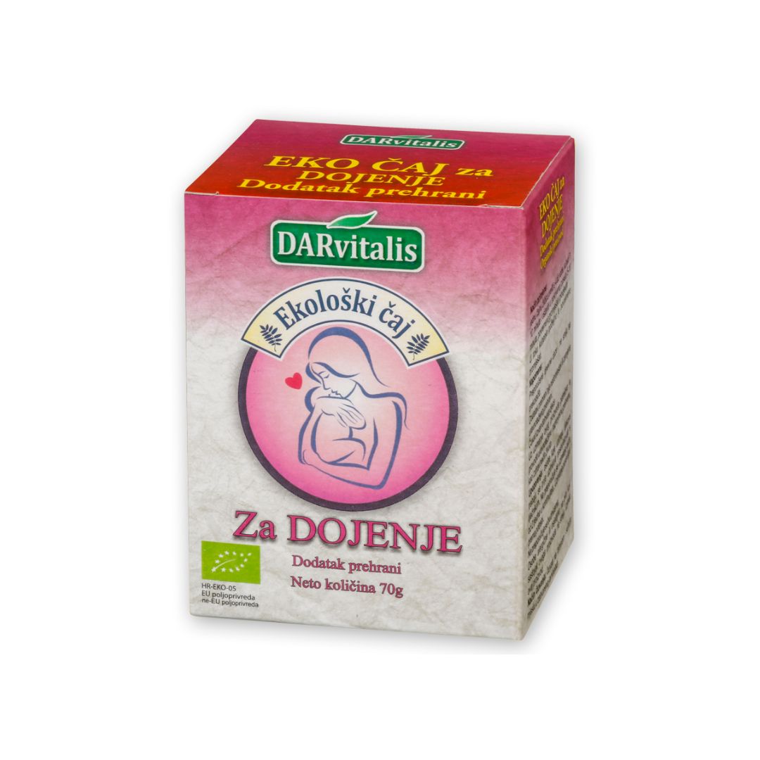 Ekološki čaj za dojenje sadrži plod kima (Carum carvi), plod aniša (Pimpinella anisum) i plod piskavice (Trigonella foenum graecum). Dodatak prehrani.
