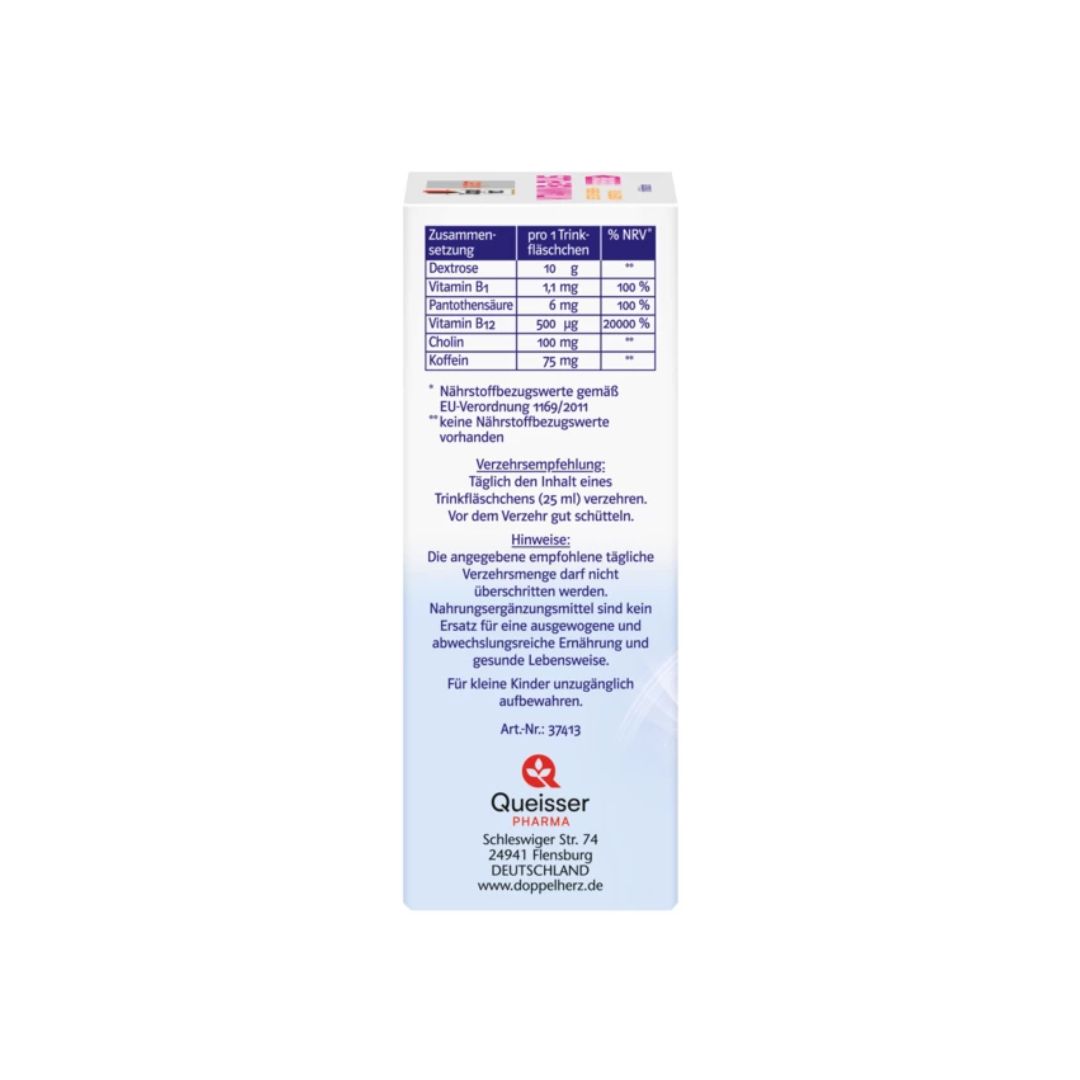 Doppelherz system Vitamin B12 Plus Energie je dodatak prehrani u tekućim bočicama s kofeinom, vitaminima B12, B1, B5, kolinom i dekstrozom – za energiju, koncentraciju i smanjenje umora, idealan za aktivan stil života.