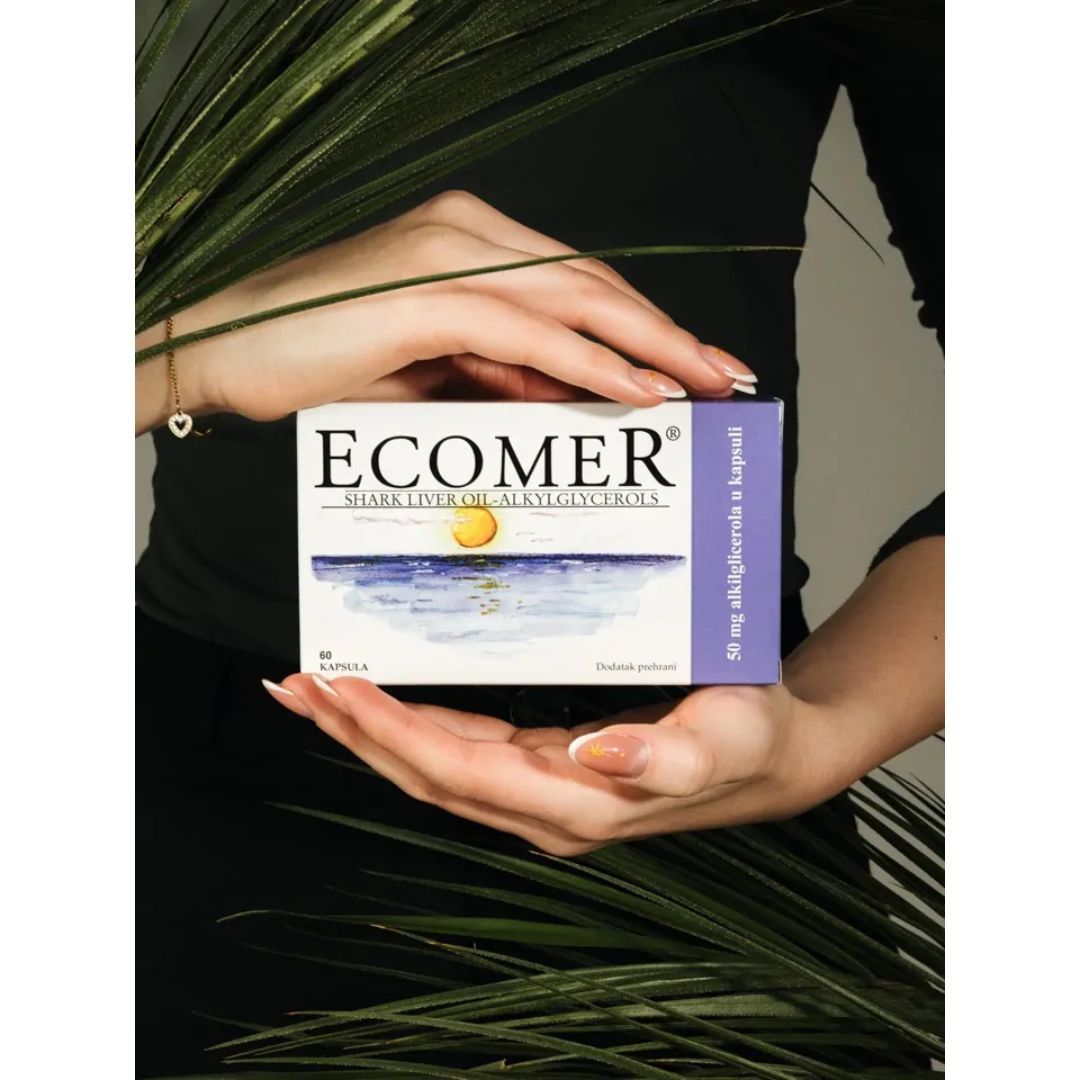 ECOMER dodatak prehrani s alkilglicerolima iz ulja jetre morskog psa pruža podršku normalnom funkcioniranju organizma i vitalnosti. Standardizirana kvaliteta i pogodnost za svakodnevnu upotrebu.
