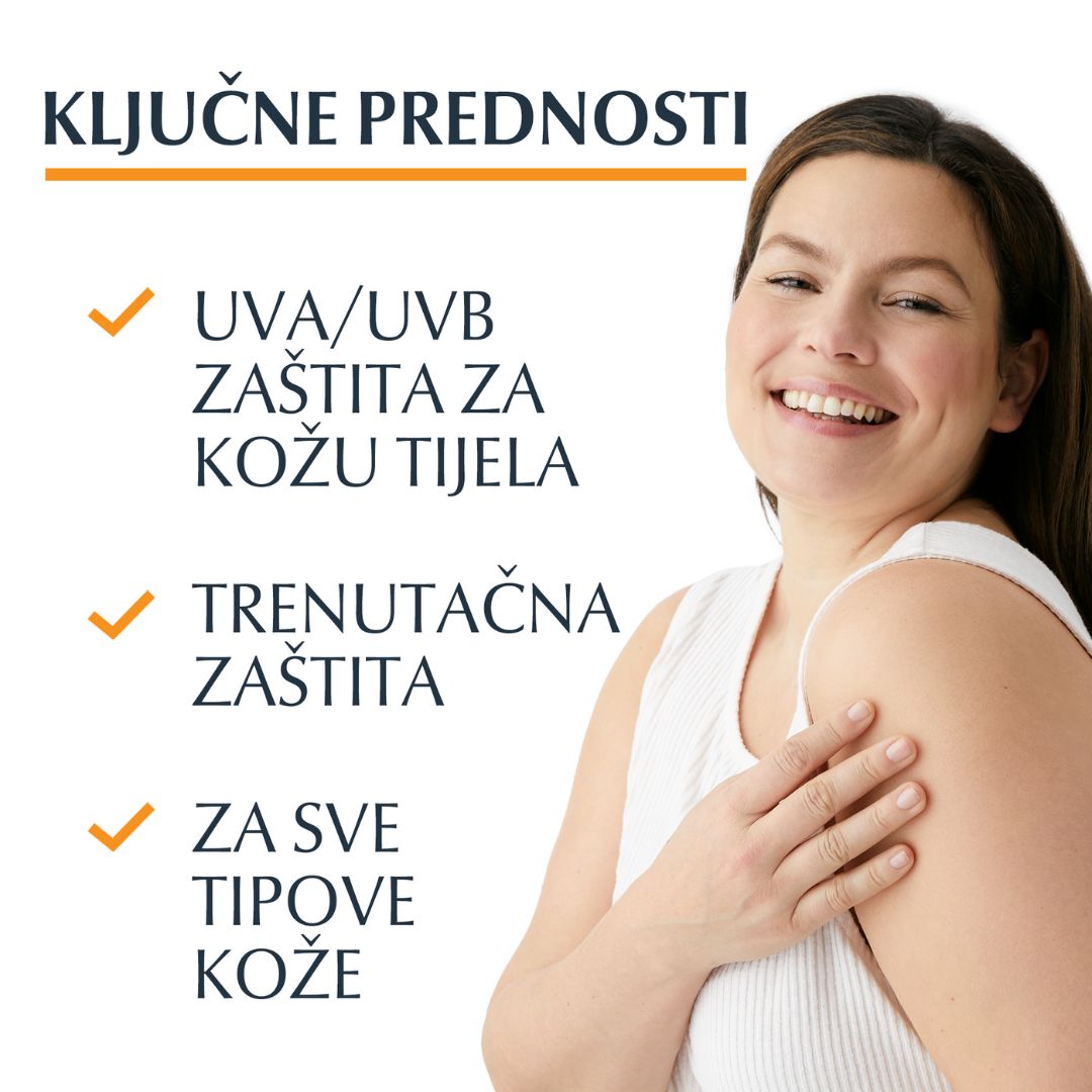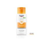 Eucerin SUN Sensitive Protect ekstra lagani losion za zaštitu osjetljive kože od sunca SPF 50+ je krema za zaštitu kože od sunca za tijelo koje smiruje osjetljivu kožu i štiti od oštećenja kože uzrokovanog suncem.