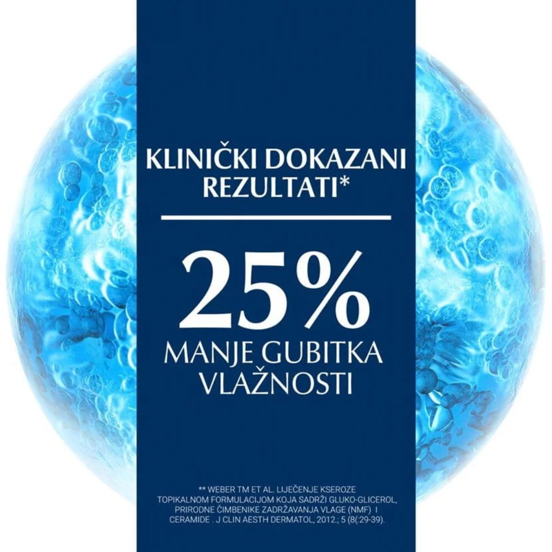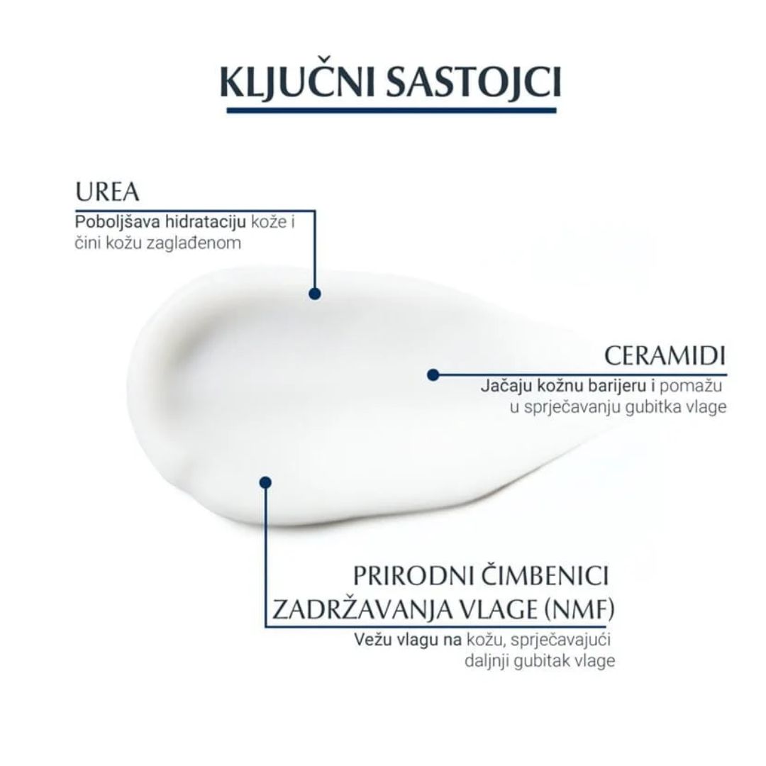 Formula s ureom, ceramidima i prirodnim faktorima vlaženja (NMF) pomaže zadržati vlagu u koži i podržava njezinu prirodnu zaštitnu barijeru. Redovitom primjenom koža postaje vidljivo glađa, mekša i elastičnija.