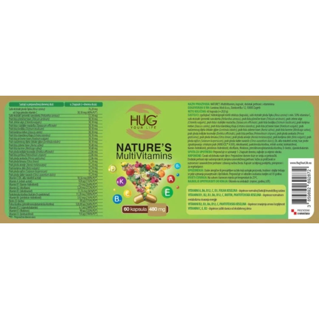 HUG NATURES MultiVitamins namijenjen je osobama koje imaju djelomični nedostatak vitamina ili ih nedovoljno unose u organizam osjećaju stres, kronični umor i iscrpljenost ili imaju oslabljen imunološki odgovor.