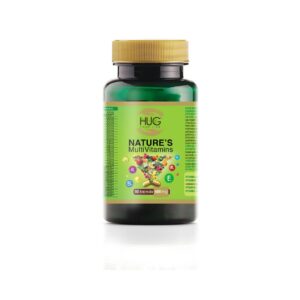HUG NATURES MultiVitamins je dodatak prehrani bogat je prirodnim izvorima vitamina iz pomno biranih biljaka koji djeluju blagotvorno na cijeli organizam. Sinergija čak 20 biljaka i 13 vitamina!