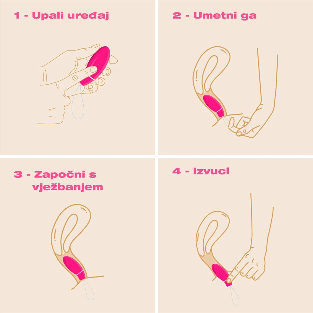 Uređaj vibracijom daje signal kada treba aktivirati mišiće, a prestankom vibracije označava vrijeme za opuštanje – što omogućuje intuitivan trening bez potrebe za brojanjem ili praćenjem ritma.