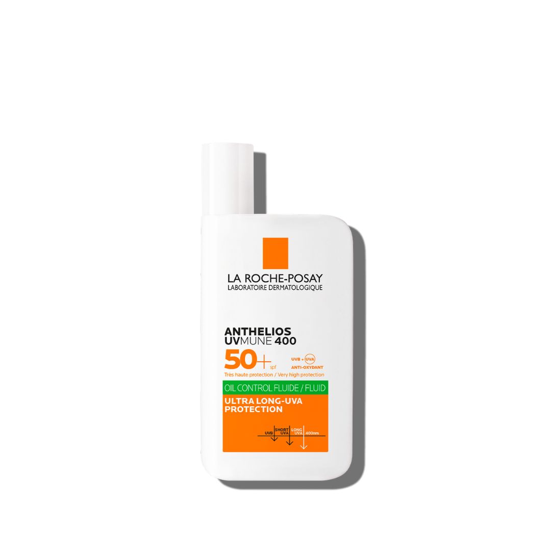 LA ROCHE-POSAY ANTHELIOS UVMUNE 400 Fluid za masnu kožu SPF50+ vrlo je visoka zaštita od sunca u ultralaganom fluidu bez mirisa koji pomaže kontrolirati višak sebuma i masni sjaj, idealan za masnu i mješovitu kožu lica.