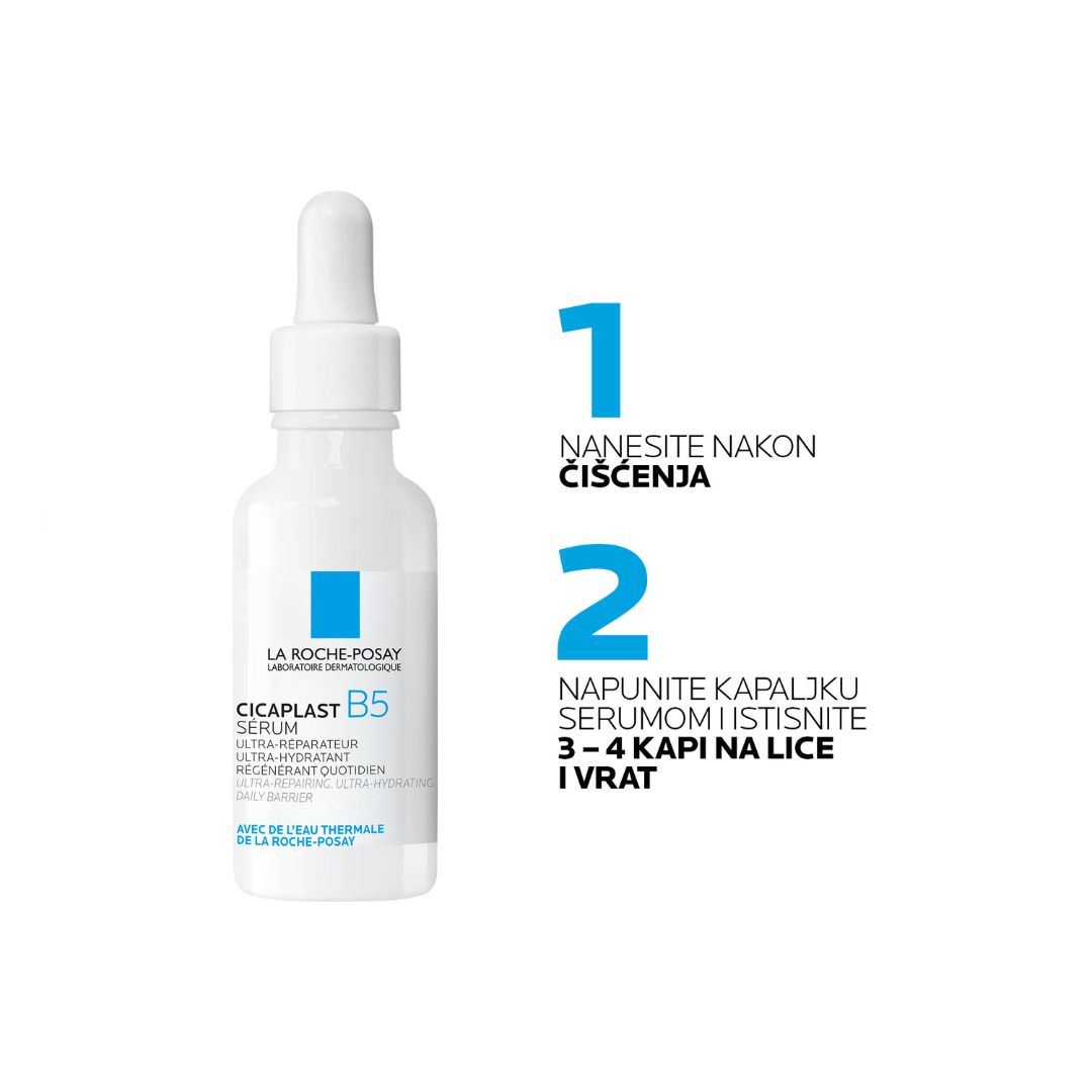 Ekskluzivna formula “poput barijere” stvara tanki sloj na koži kako bi se zaštitila od vanjskih agresora i pospješila bolji oporavak kože. La Roche-Posayev Cicaplast Serum B5 pomaže ujednačavanju tona kože i poboljšanju teksture kože za zdrav ten. Lagana, nemasna tekstura seruma odmah vlaži i umiruje kožu.
