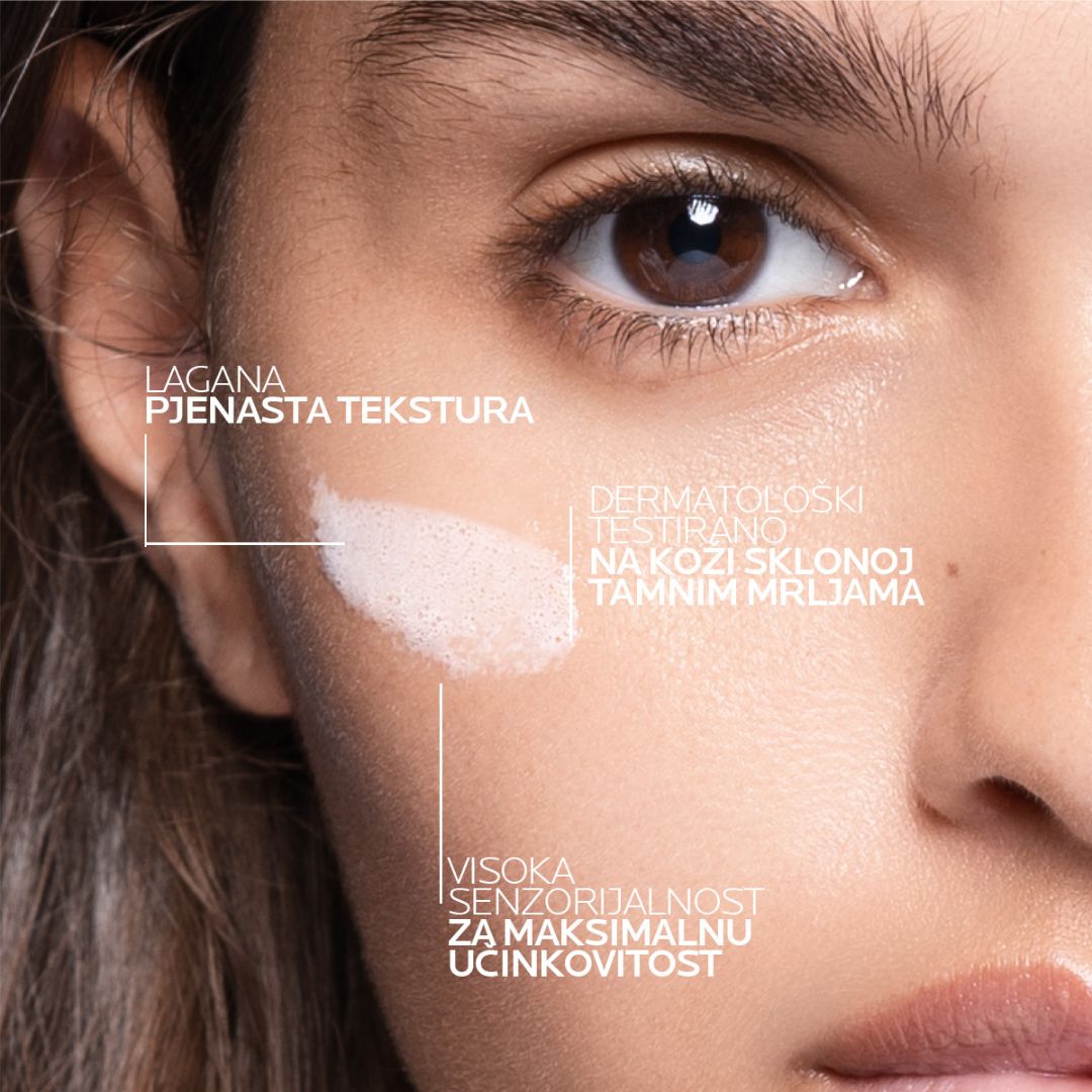 LA ROCHE-POSAY MELA B3 mikro-piling gel protiv tamnih mrlja nježno čisti i vidljivo zaglađuje teksturu kože. Formuliran je s Melasylom, PHA kiselinom i niacinamidom.