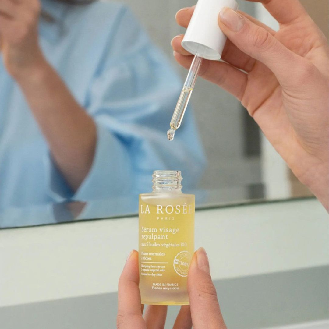 La Rosée Serum za puniji izgled lica je hranjivi serum formuliran s pažljivo odabranom kombinacijom 5 organskih biljnih ulja koji pomažu obnoviti i ojačati kožu te joj pružiti puniji, zaglađen izgled.