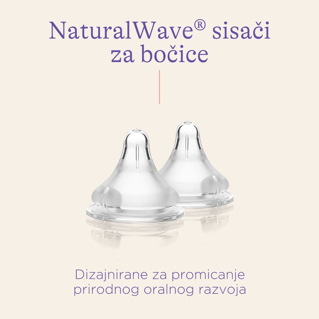 NaturalWave sisači za bočice razvijeni su kako bi što vjernije oponašali prirodan način sisanja na dojci i time olakšali prijelaz između dojenja i hranjenja iz bočice – bez narušavanja već uspostavljenog ritma dojenja.