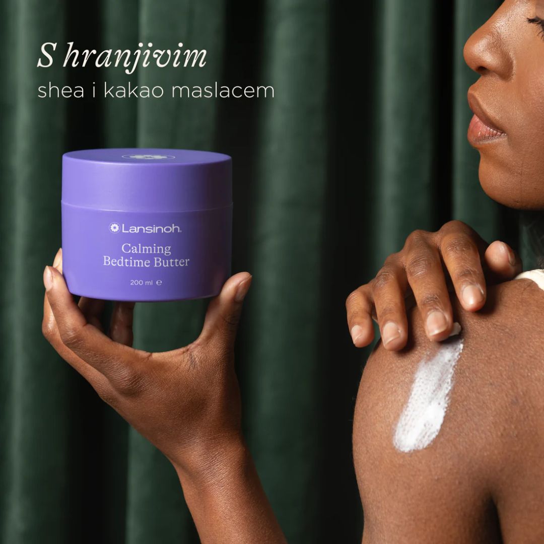 Lansinoh umirujući maslac prije spavanja za trudnoću i postpartum. S magnezijem, lavandom i kamilicom opušta mišiće, smiruje tijelo i poboljšava kvalitetu sna. Dubinski hidratizira i brzo se upija.