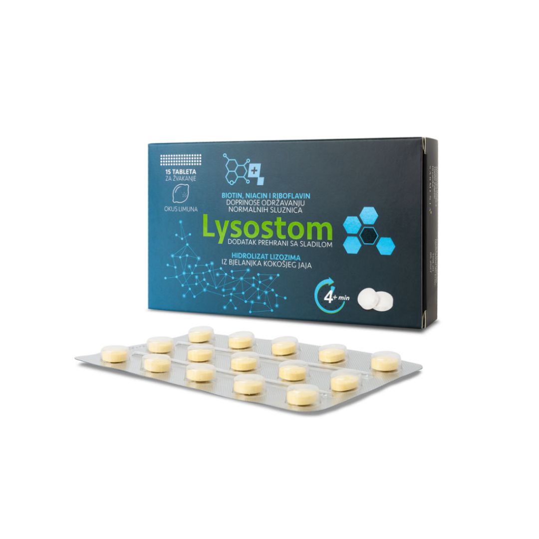 Lysostom sa sladilom i hidrolizatom lizozima iz bjelanjka jaja. Osvježavajući okus limuna, podrška imunitetu.