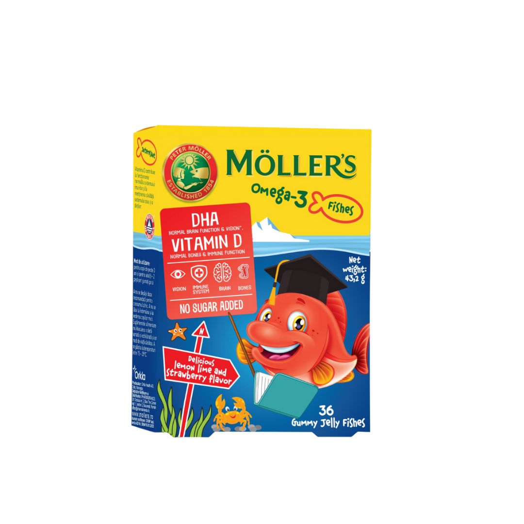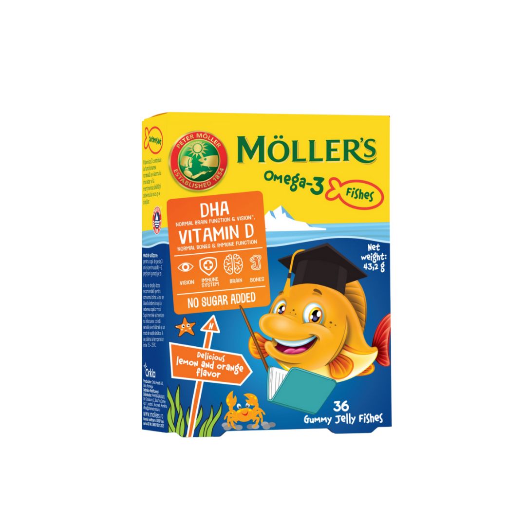 Mollers Omega-3 gumene ribice s vitaminom D savršena su, zdrava poslastica za vaše dijete. Sadrže prirodne omega-3 esencijalne masne kiseline (DHA i EPA) u obliku triglicerida, koji se bolje apsorbiraju od sintetskih oblika.