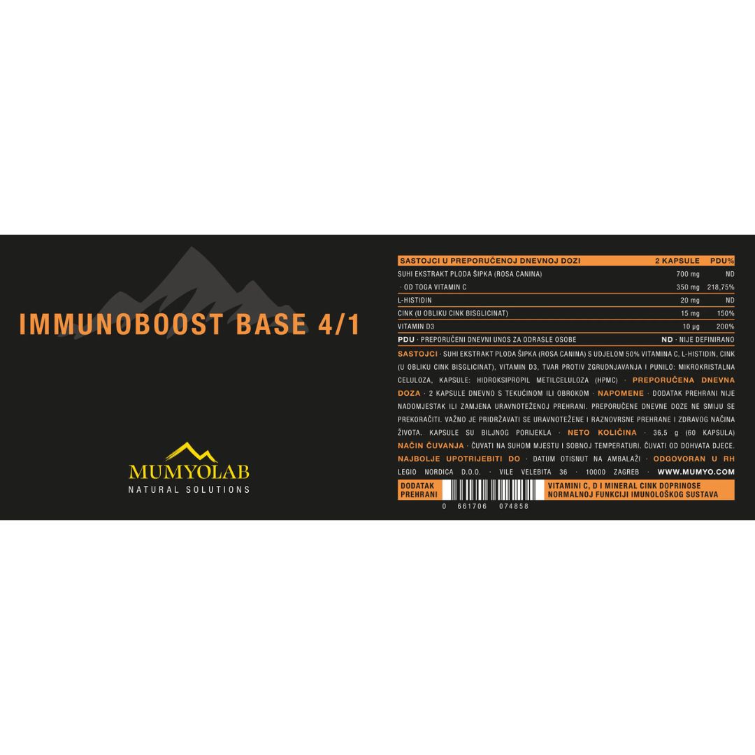 MUMYOLAB IMMUNOBOOST BASE 4/1 je dodatak prehrani u kapsulama koji sadrži sinergijsku mješavinu namijenjenu podizanju imuniteta.