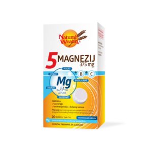 Natural Wealth 5 MAGNEZIJ 375 mg + B + C šumeće tablete sadrže punu dnevnu dozu od 375 mg magnezija iz 5 različitih izvora. Samo jedna šumeća tableta dnevno osigurava 5 puta veću iskoristivost, brzu apsorpciju te visoku bioraspoloživost u organizmu.