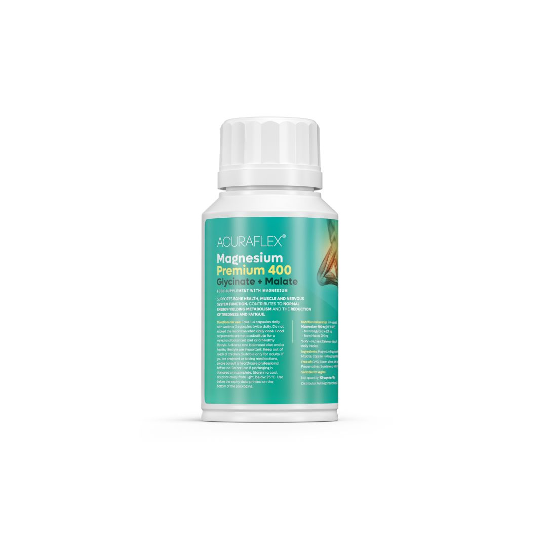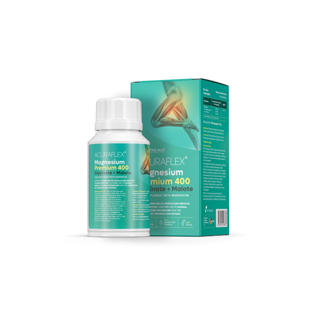 NUTRILAGO ACURAFLEX Magnesium Premium 400 dodatak je prehrani s magnezijem, formuliran kao kvalitetna kombinacija magnezijevog bisglicinata i magnezijevog malata.