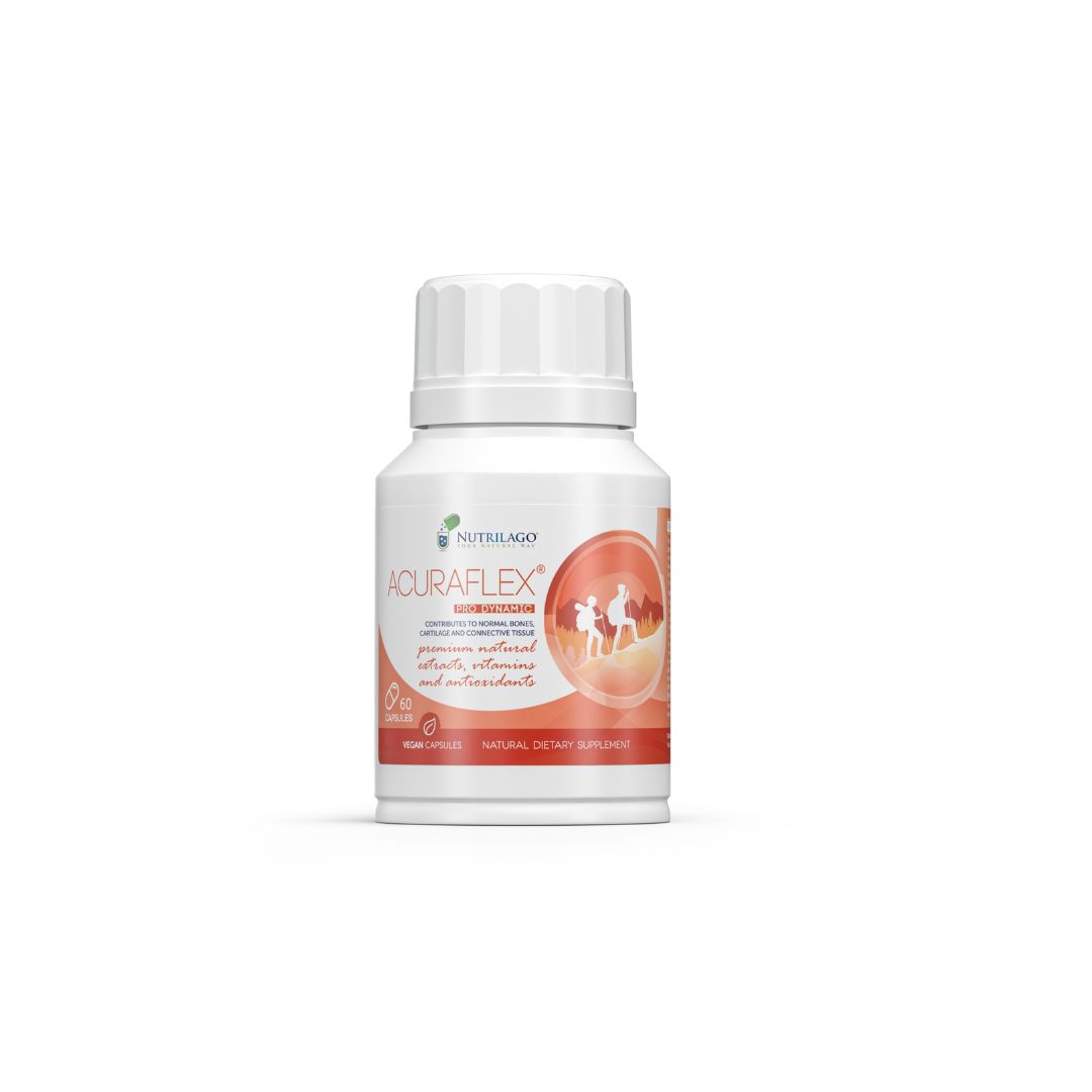 NUTRILAGO ACURAFLEX Pro Dynamic je dodatak prehrani s MSM-om, glukozaminom, kolagenom, kondroitinom te vitaminima i mineralima za potporu zdravlju kostiju, hrskavice i vezivnog tkiva.