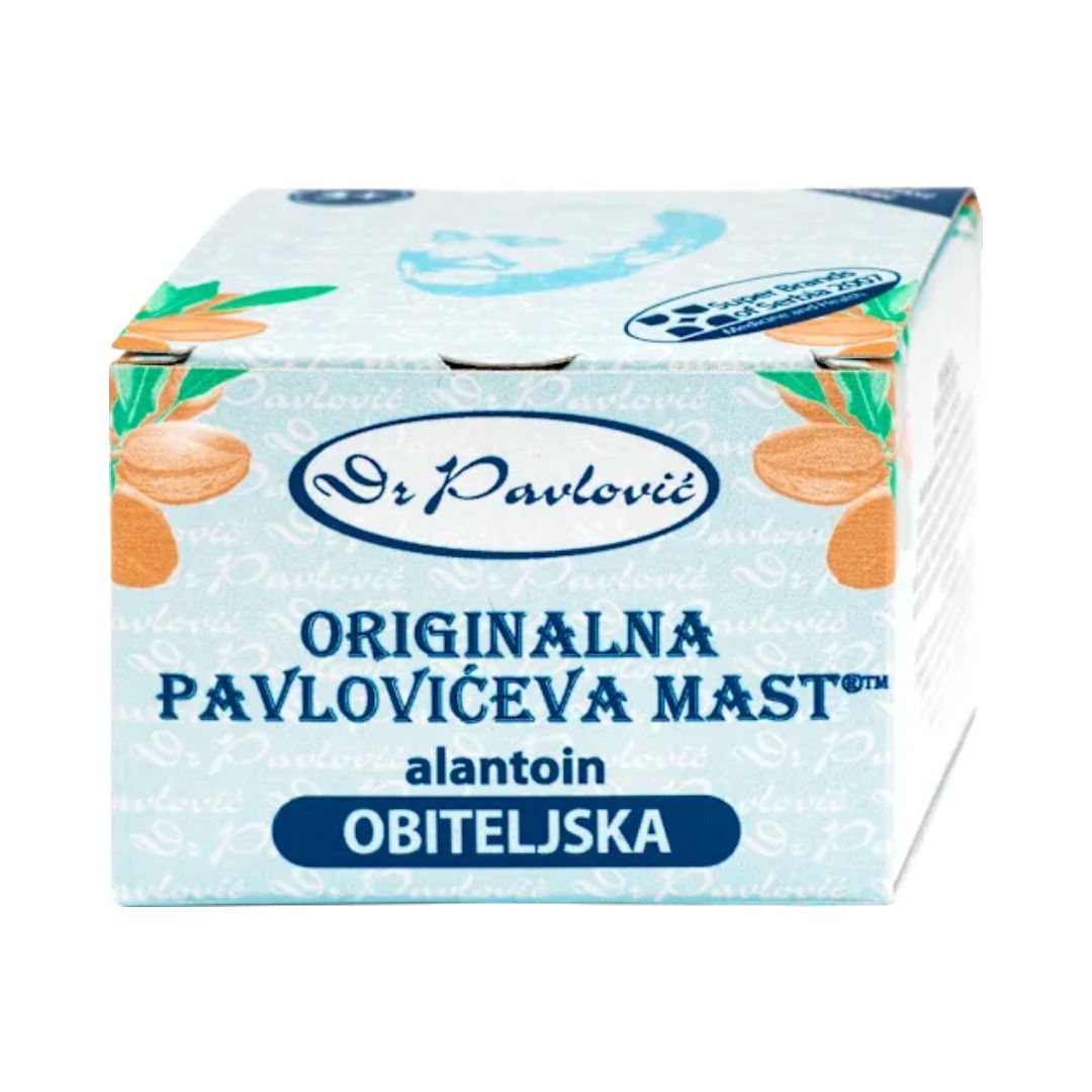 Originalna Pavlovićeva mast za obitelj s alantoinom višenamjenski je proizvod koji se može koristiti za hidrataciju, zaštitu i njegu suhe i osjetljive kože, uključujući ispucalu kožu ruku, laktova i peta te strije.