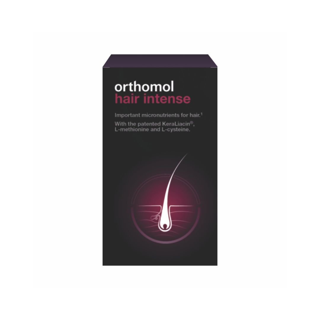Orthomol Hair Intense kapsule su dodatak prehrani koji sadrži keratin, bakar, cink, biotin i druge mikronutrijente za podršku zdravlju kose. Kapsule se preporučuju kod pojačanog opadanja, slabe ili lomljive kose.