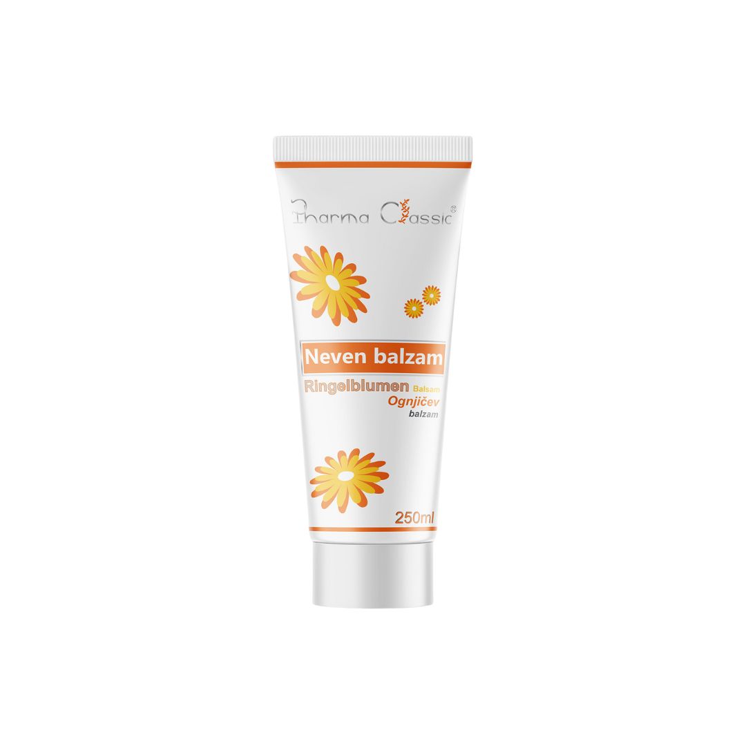 Pharma Classic Neven balzam je visokokvalitetan prirodni balzam namijenjen svakodnevnoj njezi kože, posebno suhe, osjetljive, ispucale ili nadražene kože. Temeljen na tradicionalnoj recepturi s ekstraktom cvijeta nevena (Calendula officinalis), ovaj balzam blagotvorno djeluje na kožu zahvaljujući svojim umirujućim, regenerativnim i zaštitnim svojstvima.