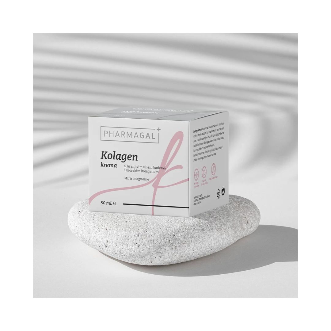 PHARMAGAL Kolagen krema s hranjivim uljem badema i nativnim morskim kolagenom Maricol S. Koristi se u njezi suhe, s dobi ili sunčanjem ostarjele kože za dnevnu i noćnu njegu lica i vrata, te zaštitu od njenog prijevremenog starenja.