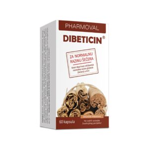Pharmoval Dibeticin kapsule su dodatak prehrani za normalnu razinu šećera u krvi. Kapsule sadrže ekstrakt cejlonskog cimetovca, alfa lipoičnu kiselinu te 300 % preporučenog dnevnog unosa kroma.