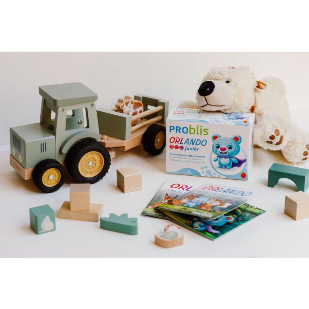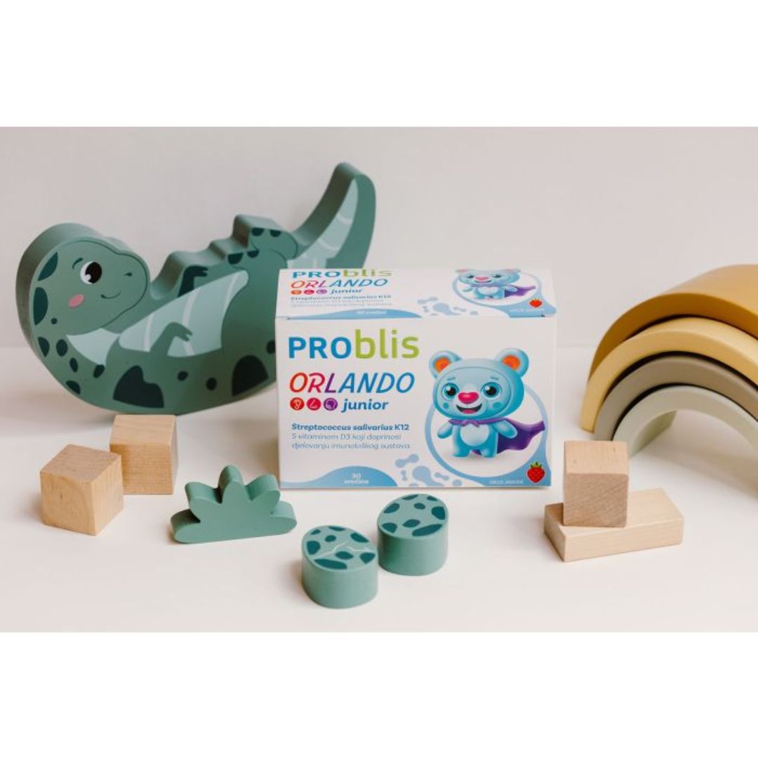 PROblis ORLANDO junior je dodatak prehrani s okusom jagode, namijenjen djeci starijoj od 1 godine. Sadrži klinički dokazan bakterijski soj Streptococcus Salivarius K12 kao pomoć za manje učestalih infekcija uha, grla i nosa.