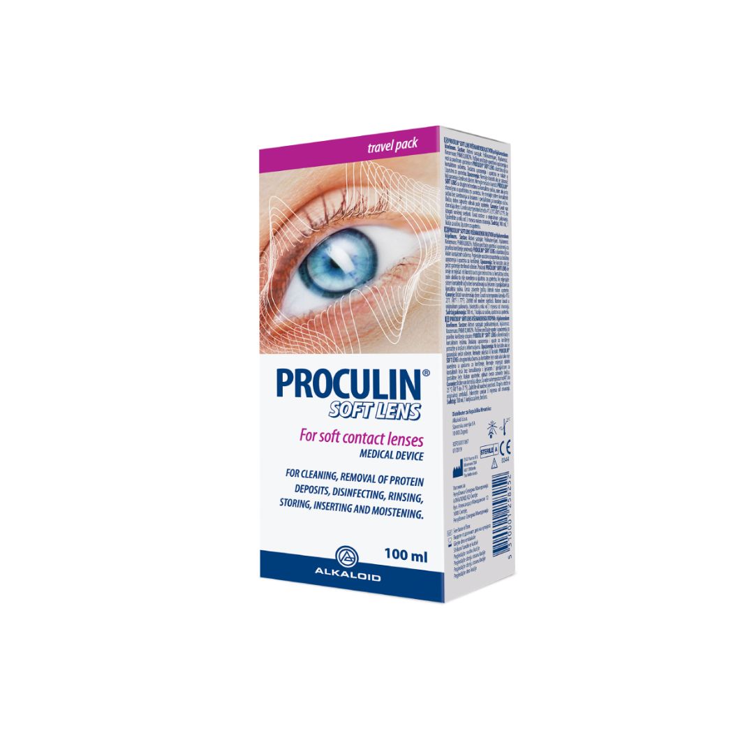 Proculin Soft Lens – višenamjenska otopina za meke kontaktne leće s hijaluronskom kiselinom. Vlaži, čisti i dezinficira leće te pruža dugotrajnu udobnost, idealna i za osjetljive oči. Dostupna pakiranja: 100 ml i 360 ml.