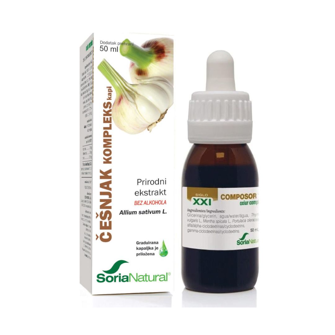 Soria Češnjak kompleks kapi biljna su formula s ekstraktima češnjaka, pelina, kamilice i timijana u biljnom glicerolu. Preporučuje se kao prirodna pomoć kod crijevnih parazita i za potporu probavnom sustavu.