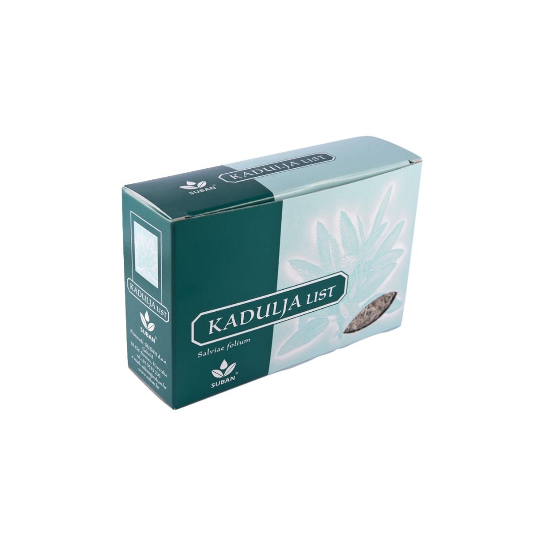 Kadulja list čaj – biljni čaj i pripravak za grgljanje, tradicionalno korišten za smanjenje znojenja, podršku u menopauzi i njegu usne šupljine i grla. Dodatak prehrani.