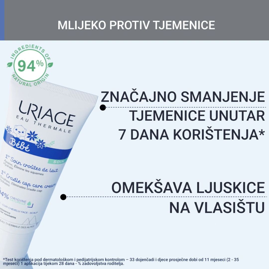 URIAGE Bebe Prvo mlijeko protiv tjemenice koje umiruje osjetljivo bebino vlasište, pomaže ukloniti tjemenicu i održava ravnotežu kože.