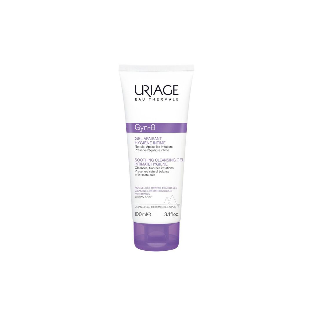 URIAGE Gyn-8 Umirujući gel za intimnu njegu nježno čisti, ublažava iritaciju i pomaže vratiti prirodnu ravnotežu intimne flore. Bez sapuna, s GLYCO-GYN kompleksom i pirokton olaminom.