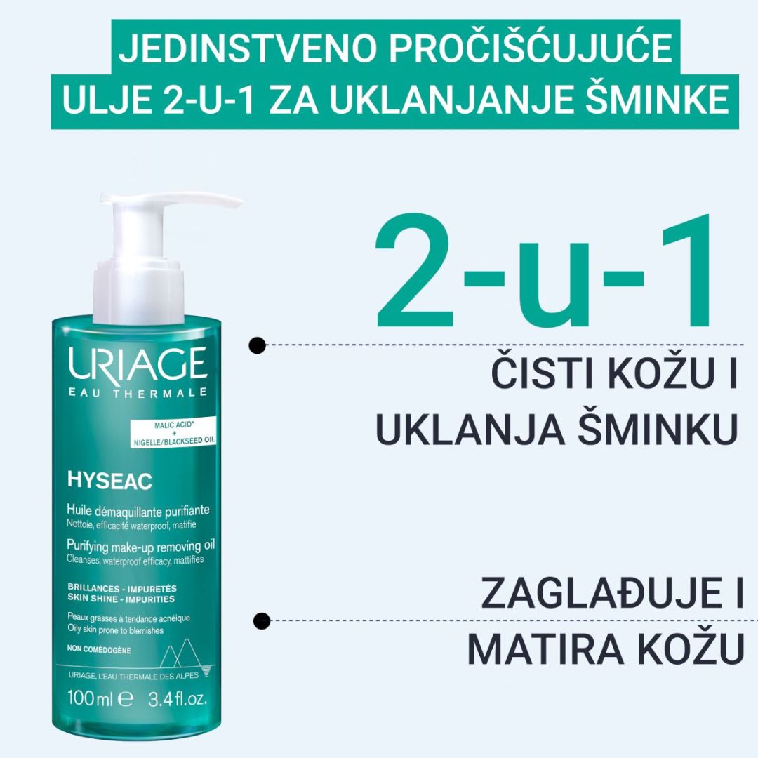 URIAGE HYSEAC Pročišćavajuće ulje za čišćenje lica i uklanjanje šminke – vizualno pročišćava pore i ostavlja kožu mekom i svježom. Idealno za mješovitu i masnu kožu sklonu aknama.