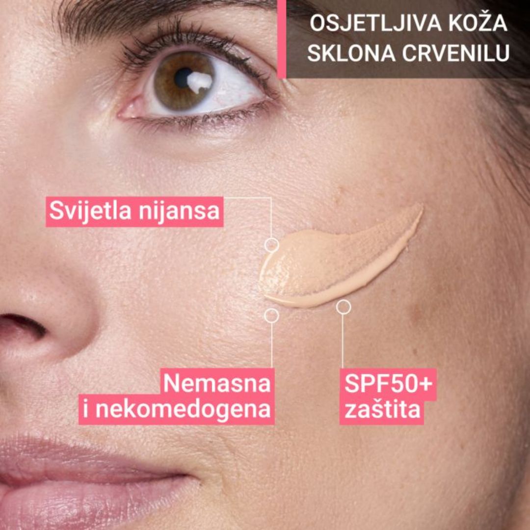 Zahvaljujući UVA i UVB filterima sa SPF 50, krema pruža vrlo visoku zaštitu od sunčevog zračenja, što je osobito važno kod kože sklone crvenilu, kuperozi i fotoosjetljivosti.