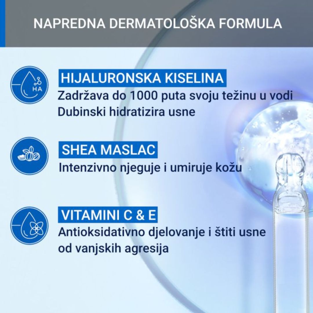 Hidratantni i hranjivi stik za svakodnevnu njegu usnica, posebno formuliran za osjetljivu i suhu kožu.