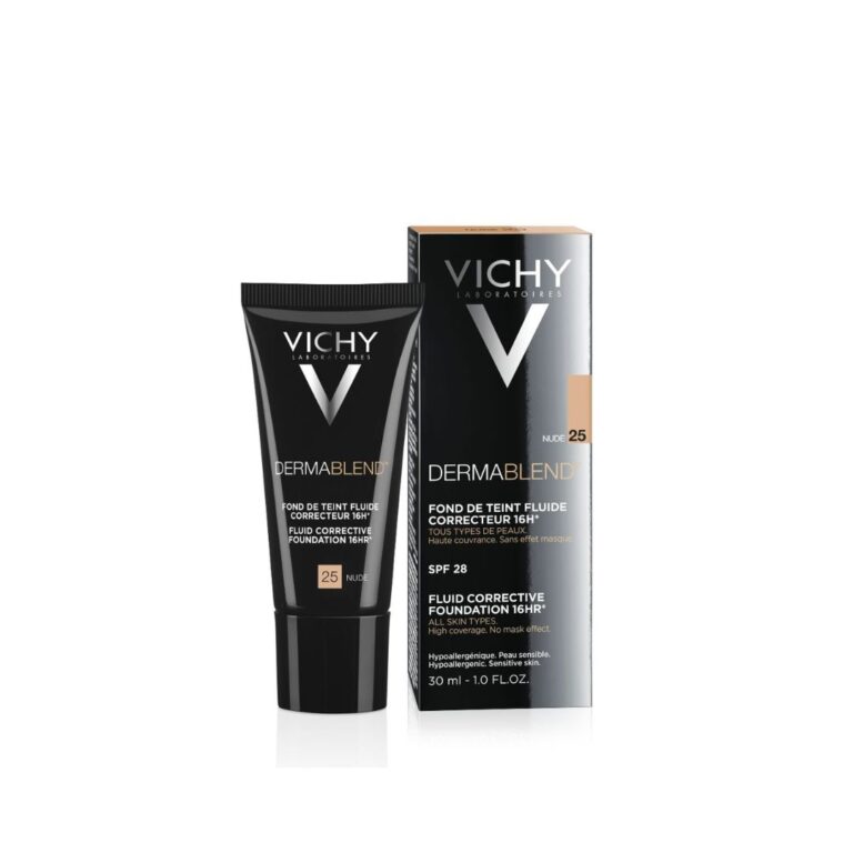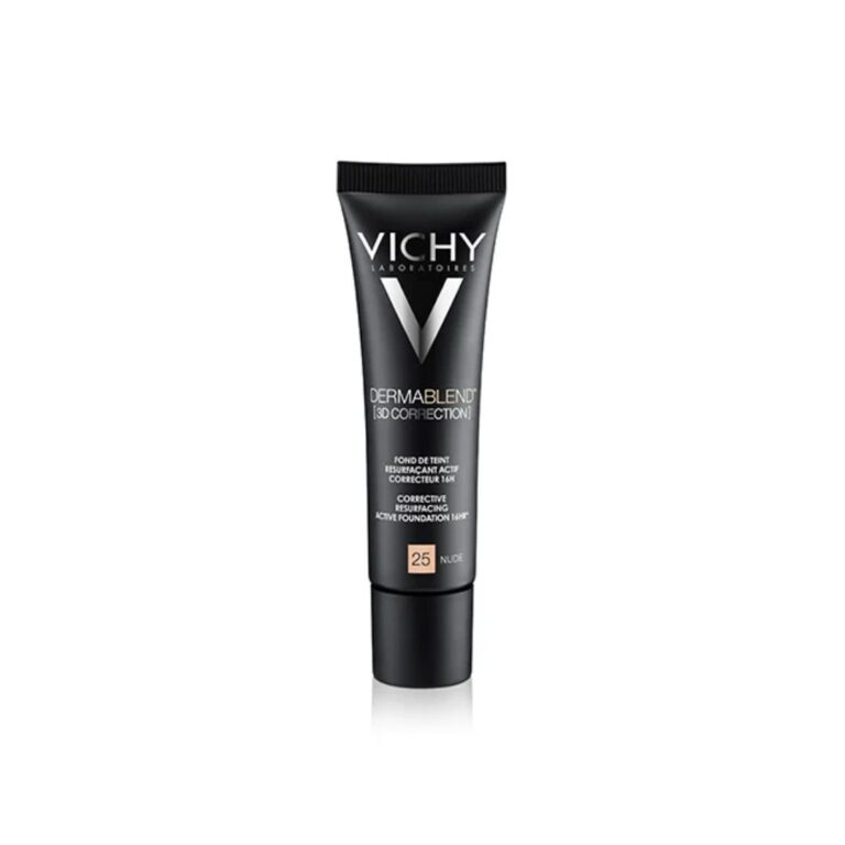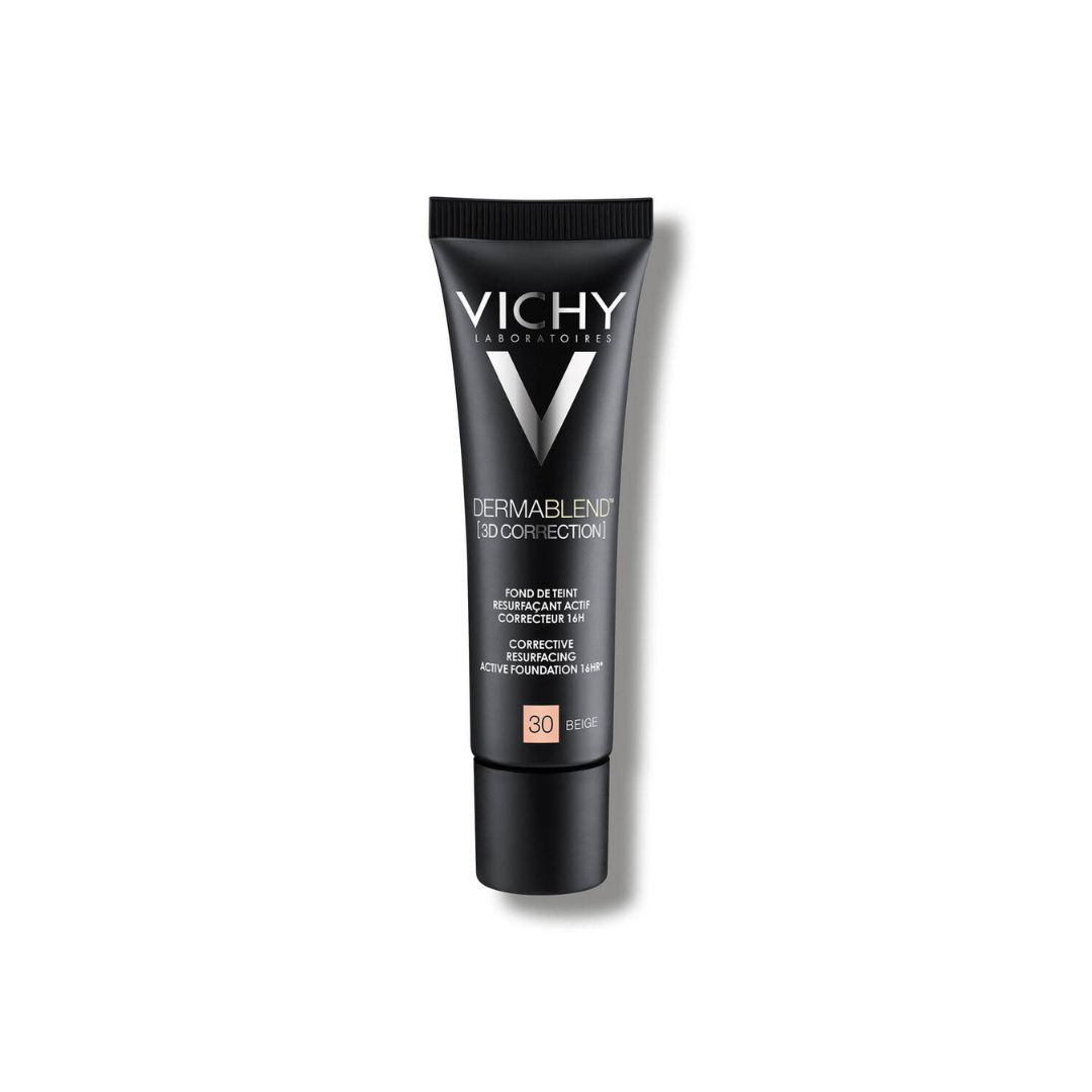 VICHY DERMABLEND 3D Korektivni puder za masnu kožu sklonu aknama s visokim stupnjem prekrivanja, postojan do 16 sati. Bez učinka maske. Za ultra mat izgled.