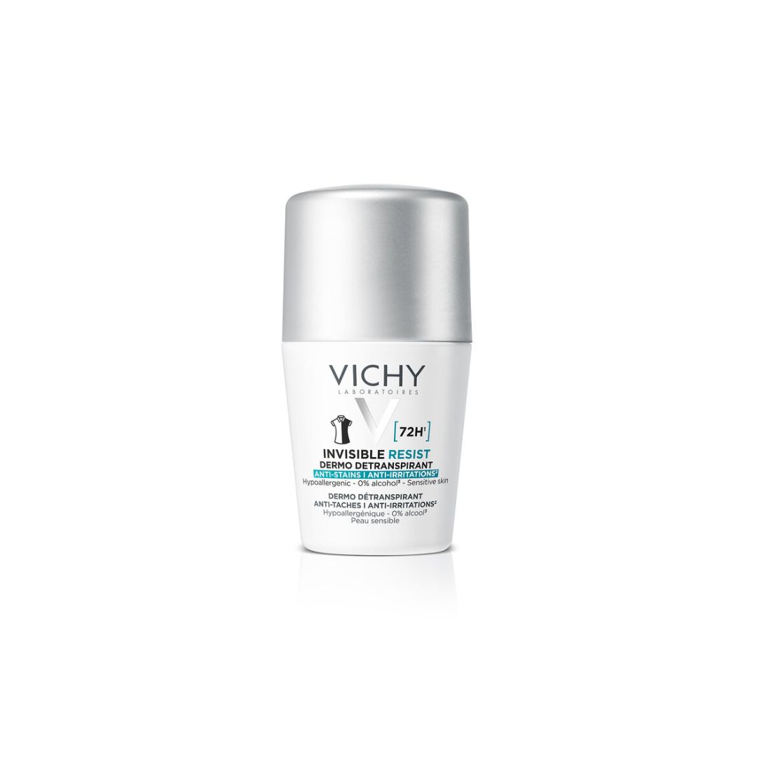 VICHY Invisible Resist Roll-on nudi 72-satnu zaštitu od znojenja i mirisa, ne ostavlja tragove na odjeći i nježan je prema koži, pružajući visoku udobnost i zaštitu.