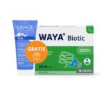 Promo paket: Waya Biotic kapi za crijevnu ravnotežu + gratis Uriage Bebe krema za čišćenje (50 ml) – nježna njega bez sapuna za osjetljivu kožu.